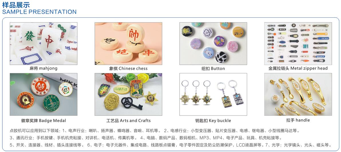 具有显著的点胶优势和高性价比。采用高清摄像头360C全景拍摄自动识别的方式,可快速准确完成多种复杂产品的定位;配备简单易学的操作软件,机器稳定性高,可配备多头同时作业,大大提升生产效率;模块化设计,灵活便捷; -机多用,广泛应用于各种行业。