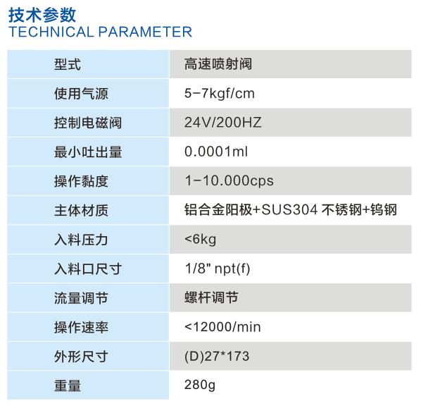 HS-V925高速喷射阀设计为涂覆粘度装配流体,可实现密集重复胶点的精密控制。在操作期间,受控的脉冲空气作用于活塞,将针头从针头座抽离至预设距离,以提供精确。可重复的流体流量。不锈钢针头位于针头适配器内,两次喷胶之间基本不会有残胶量。